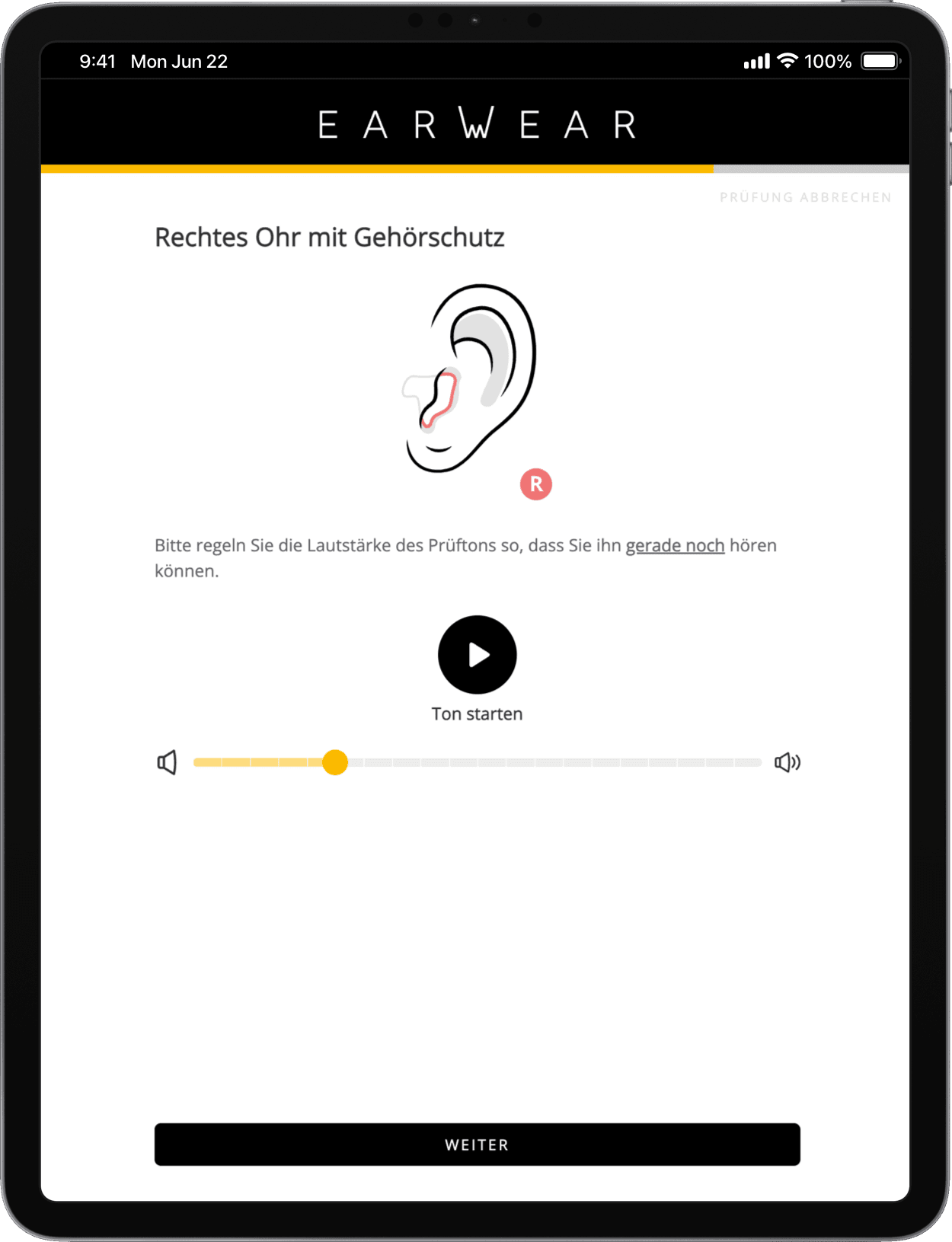 The app makes it possible to test EarWear's customized hearing protection for reliable protection and optimal attenuation. Step by step, the app guides the user through a test that takes about five minutes.