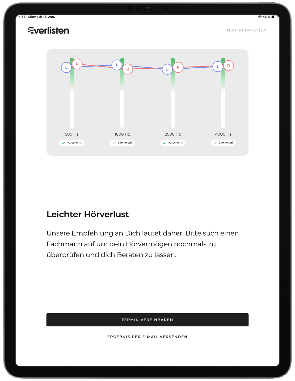 With the "Everlisten Screener App", customers of hearing care professionals test their hearing themselves and receive results on a medical level.