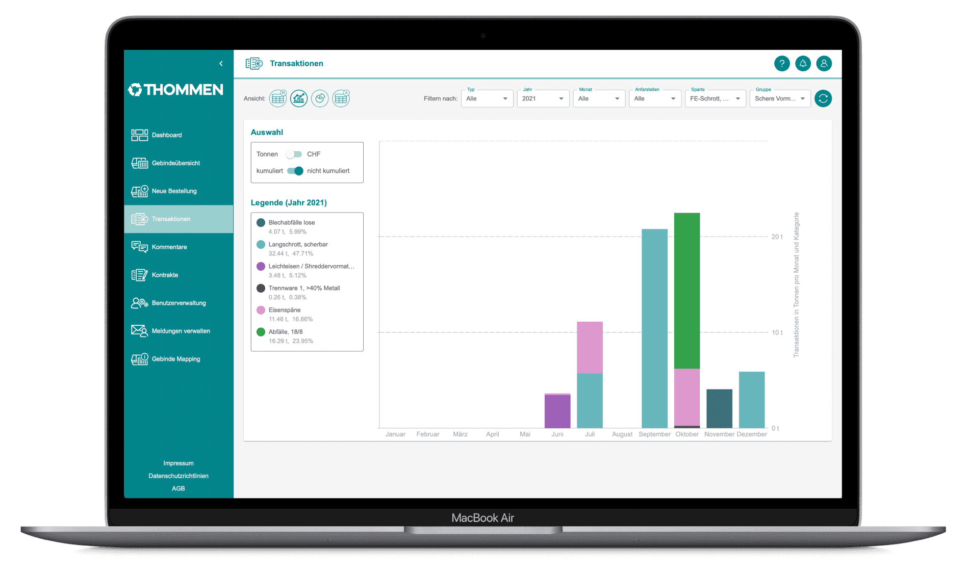 Thommen is one of the leading recycling companies in Switzerland and offers complete waste disposal and recycling services for companies and, in some cases, private individuals at a total of ten locations.